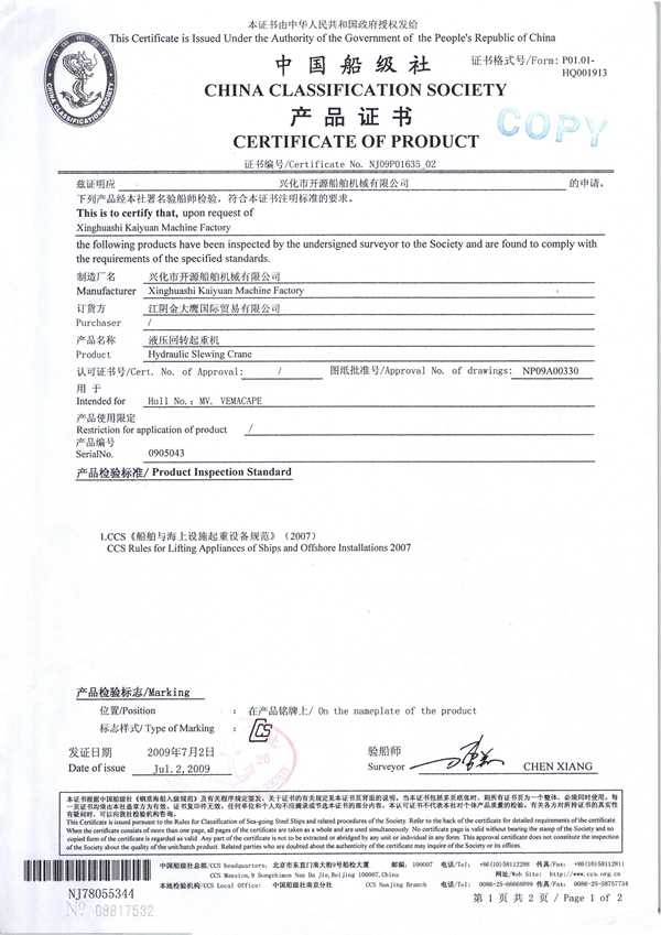 Copyright by 2009 開源重工興化有限公司 ALL Rights Reserved
